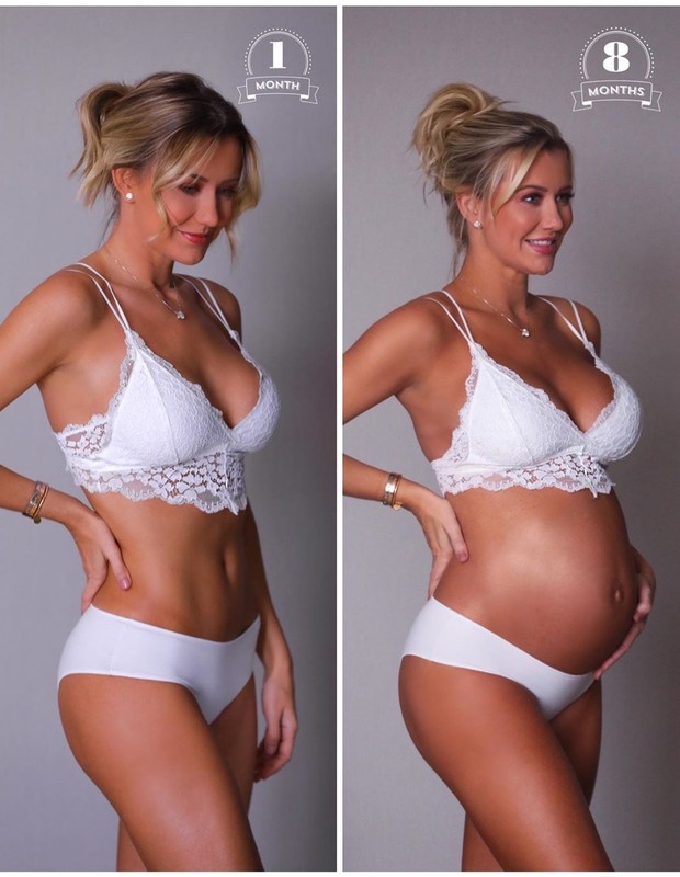Ana Paula Siebert mostrou evolução da gravidez, comparando duas fotos usando lingerie branca: uma no primeiro mês e outra atual, já no oitavo mês de gestação. Ela espera Vicky, sua primeira filha com o marido, Roberto Justus. As informações são da Quem.