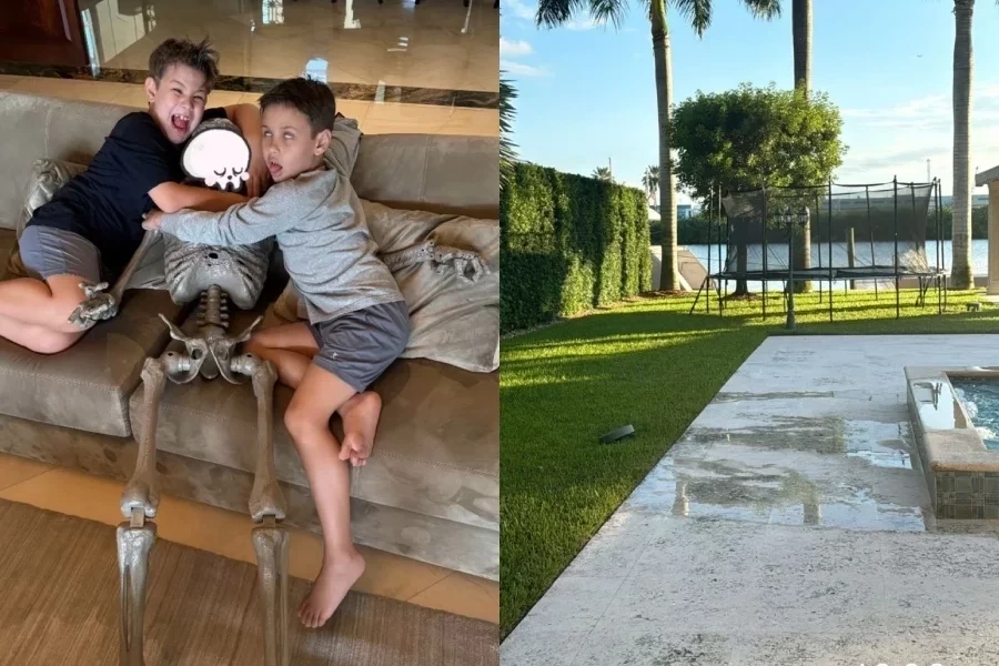 O cantor também estava no país, mas voltou para cumprir agenda neste domingo (22), com uma apresentação no Rock in Rio. No mesmo dia, Suita compartilhou em suas redes sociais fotos fazendo churrasco e banhando na piscina com os filhos do casal, Gabriel e Samuel.