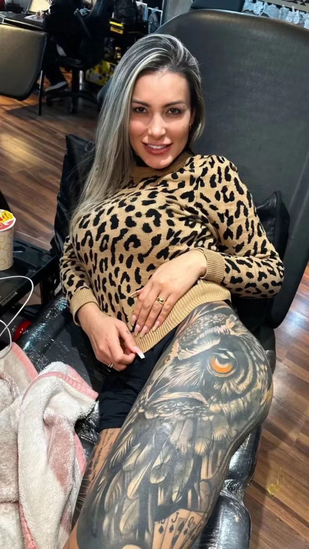 Andressa revelou que já gastou mais de 100 mil reais em tatuagens, enfatizando que seu objetivo é cobrir as cicatrizes que a incomodavam e, simultaneamente, realçar sua beleza. As tatuagens nas pernas, incluindo o desenho de uma coruja, foram realizadas pelo profissional Allysson Trrentini.