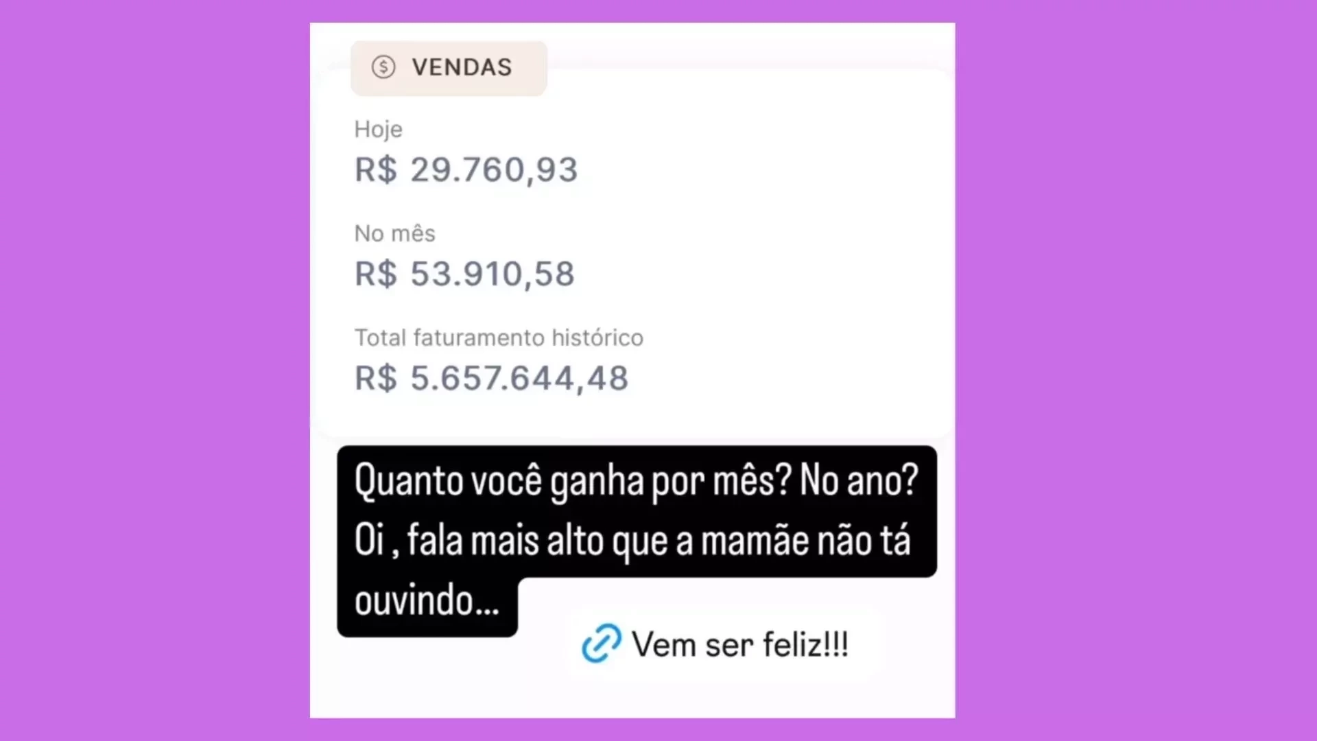 Mais tarde, Andressa publicou outra atualização para celebrar o faturamento diário de quase 30 mil reais: “Fechamos o dia com quase R$ 30 mil reais em vendas! Fala mais da mamãe, a mamãe vende conteúdo por R$ 20 apenas! A mamãe é inclusiva, ajuda os que mais precisam. Entretenimento é saúdo, bem-estar!”, afirmou.