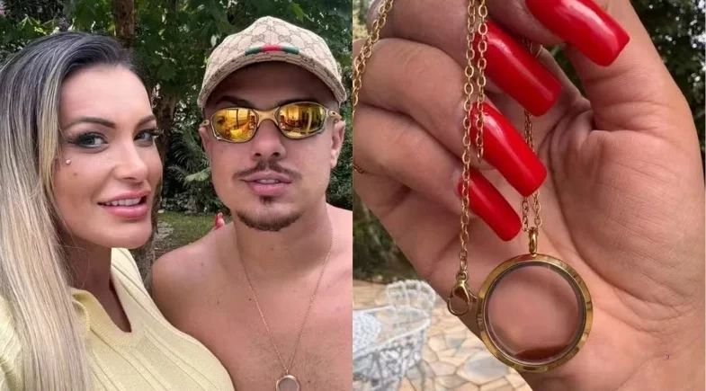 Andressa Urach, de 38, surpreendeu ao revelar o presente escolhido para marcar o início da nova fase do relacionamento. Após oficializar o casamento com o empresário musical Flávio Giglioli, de 26 anos, em uma cerimônia que aconteceu recentemente, a influenciadora confeccionou um colar com uma gota de seu próprio sangue menstrual, como símbolo de fertilidade, renovação e entrega na união recém-formalizada.