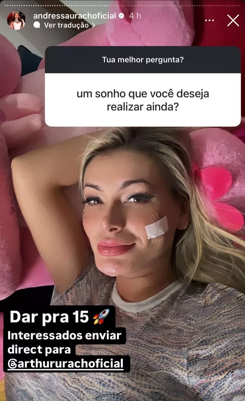 Andressa Urach segue dando o que falar! A criadora de conteudo abriu uma caixinha de perguntas em seu perfil no Instagram neste domingo (1), e um internauta questionou qual sonho a musa ainda nao realizou, e ela que não tem papas na lingua, disse que pretende fazer sexo com 15.