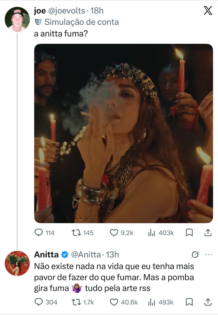 No clipe, a cantora aparece fumando um cigarro, o que gerou questionamentos do público sobre o hábito. Em resposta, ela esclareceu que a cena faz parte da construção artística. “Não existe nada na vida que eu tenha mais pavor de fazer do que fumar. Mas a pomba gira fuma. Tudo pela arte”, afirmou.