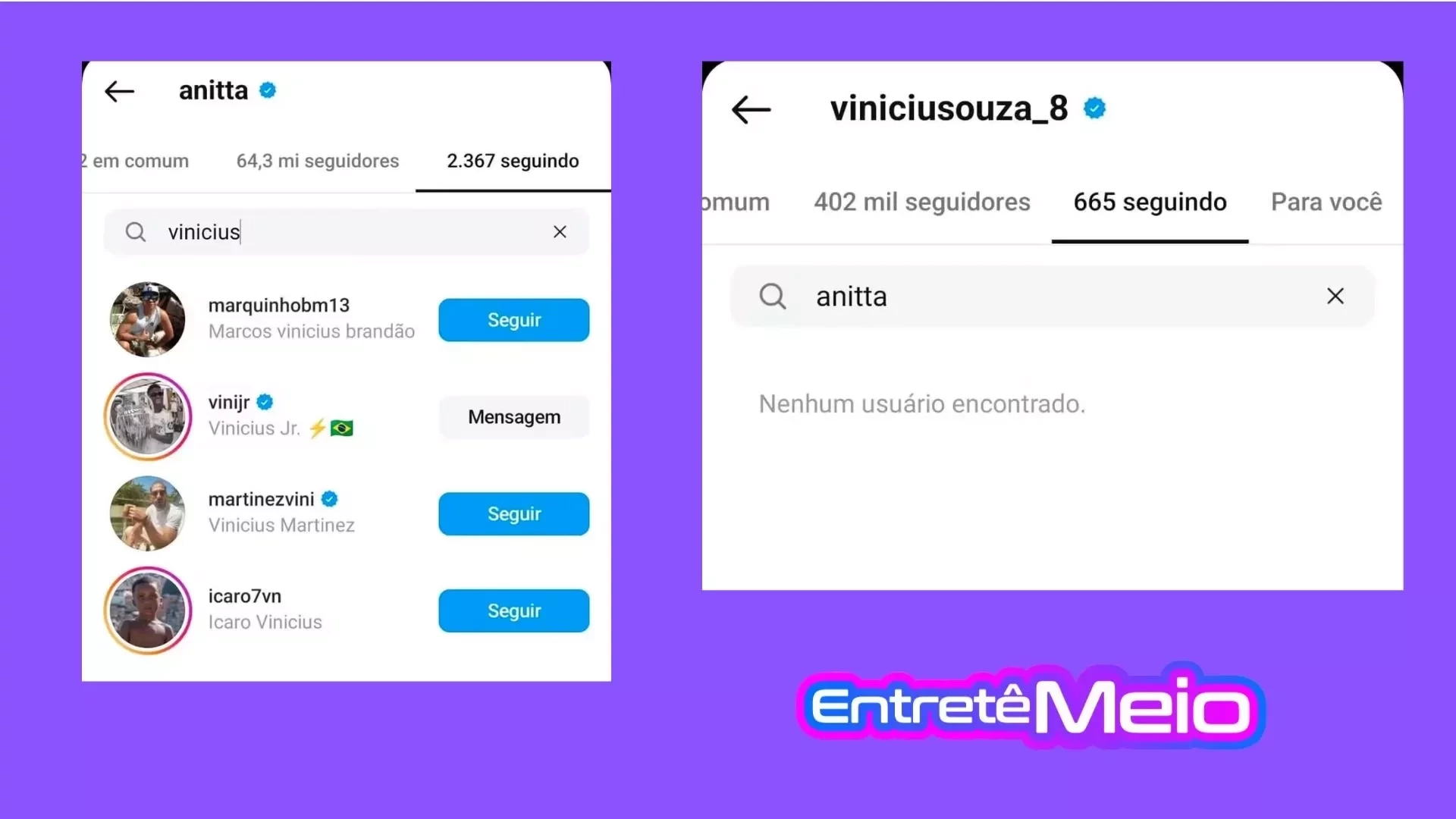 Anitta e Vinicius deixam de se seguir no Instagram - Foto: Reprodução/ Instagram - Montagem Entretêmeio