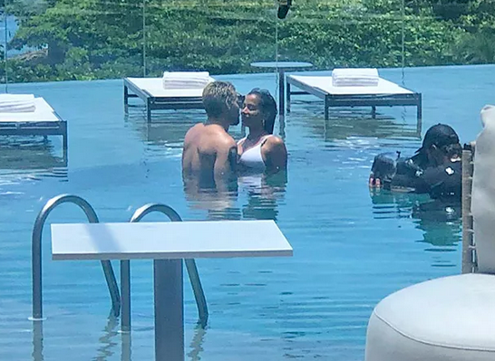 Anitta e Thiago Martins foram fotografados em clima de romance na piscina do hotel de luxo Fairmont, localizado em Copacabana, no Rio de Janeiro. As fotos foram feitas por um fã que estava hospedado no local. As informações são da Revista Quem.
