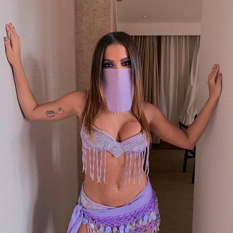 Seguindo seu estilo “vale a pena ver de novo”, a popstar decidiu homenagear a dançarina Carla Perez. Ela escolheu um dos figurinos mais marcantes da loira.