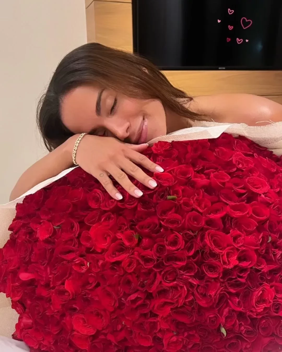 Anitta compartilhou em suas redes sociais uma foto de um enorme buquê de flores, na última sexta-feira (17). Deitada sobre as rosas vermelhas, a artista deixou seus seguidores curiosos ao não revelar quem enviou o arranjo floral. Ela manteve o mistério do remetente, sem contar se o presente veio de um admirador, fã ou se foi um mimo para si mesma.