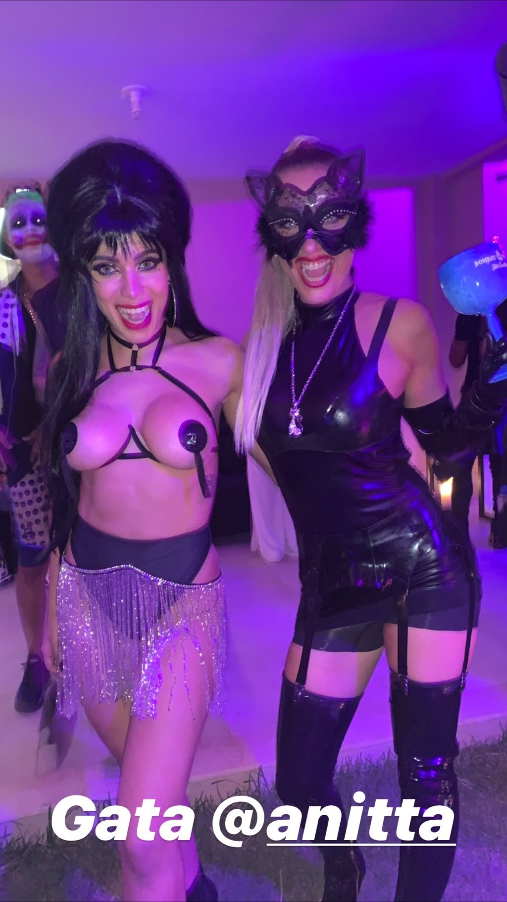 Anitta não cansa de surpreender, né?! A cantora, que abriu sua mansão, na noite de quarta-feira (30), para uma festa de Halloween repleta de famosos e familiares, se fantasiou de Elvira, do filme Elvira: A Rainha das Trevas, de 1988. Porém, madrugada adentro, a cantora decidiu ousar ainda mais no visual e ficou com um look de seios à mostra, hot pants e uma msaia supertransparente de franjas. O look também faz parte de uma das cenas do filme, um clássico do terrir (terror com humor). As informações são da Revista Quem.