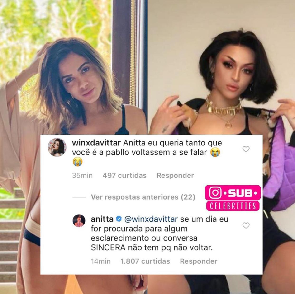 Anitta respondeu aos apelos dos fãs que afirmar torcer para que ela e Pabllo Vittar retomem a amizade. "Se um dia eu for procurada para algum esclarecimento ou conversa sincera, não tem porque não voltar", respondeu a cantora. As informações são da Revista Quem.