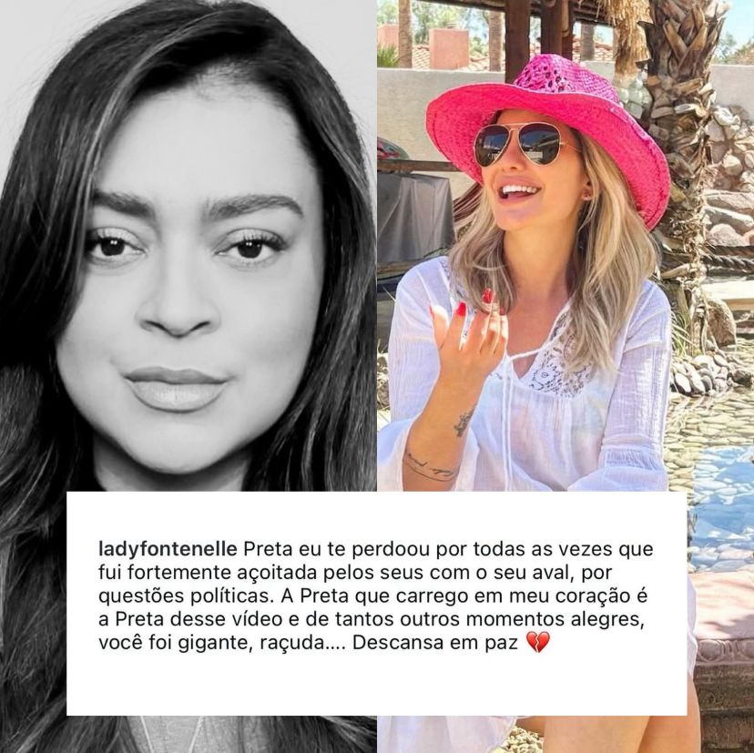 “Preta, eu te perdoo por todas as vezes que fui fortemente açoitada pelos seus, com o seu aval, por questões políticas. A Preta que carrego em meu coração é a Preta desse vídeo e de tantos outros momentos alegres. Você foi gigante, raçuda… Descansa em paz”.