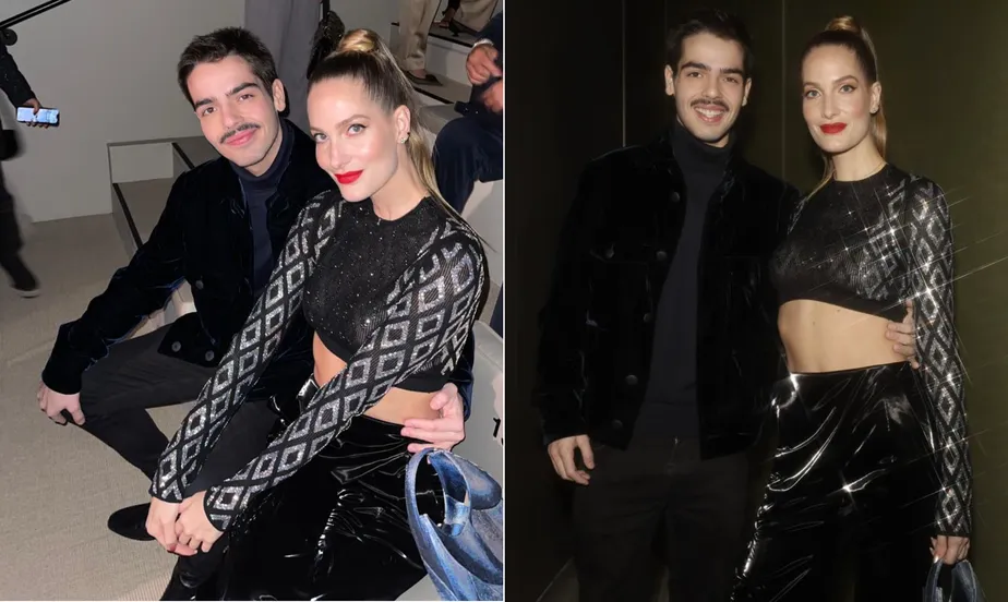 A piauiense Schynaider Moura e João Silva, filho do apresentador Faustão, prestigiaram o desfile de Giorgio Armani neste domingo (25), na Semana de Moda de Milão.