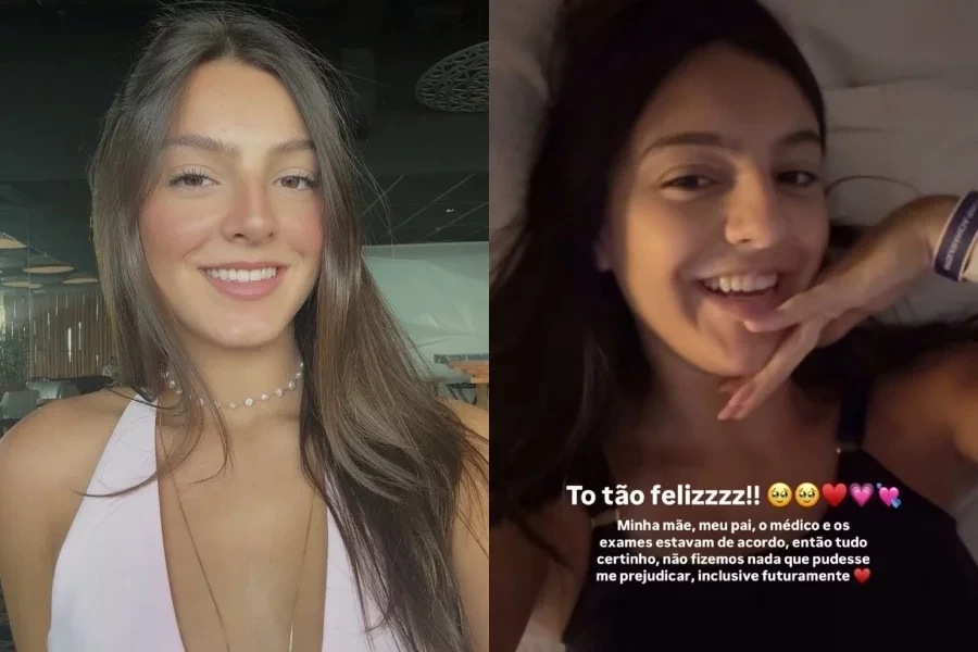 "Minha mãe, meu pai, o médico e os exames estavam de acordo, então tudo certinho, não fizemos nada que pudesse me prejudicar, inclusive futuramente", escreveu ela em uma foto deitada na cama do hospital.