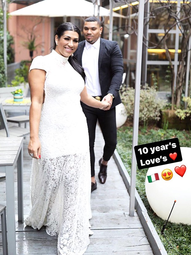 "Eu casei de novo e já estou no aeroporto de vestido de noiva e tudo fazendo check-in. Nós renovamos os nossos votos aqui na Itália, foi lindo. Fiquei muito emocionada e estamos muito felizes. Foi tudo muito corrido e não deu tempo de trocar o vestido, senão perderíamos o voo. Agora vou encontrar um banheiro para me trocar", contou no Instagram.