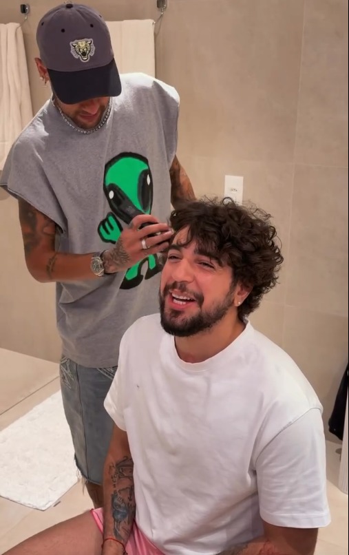 Apesar disso, o cantor decidiu seguir com a promessa e compartilhou nas redes sociais o resultado do corte. Em um vídeo publicado em seu perfil, ele aparece com os cabelos sendo raspados pelo craque Neymar Jr.