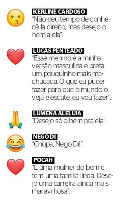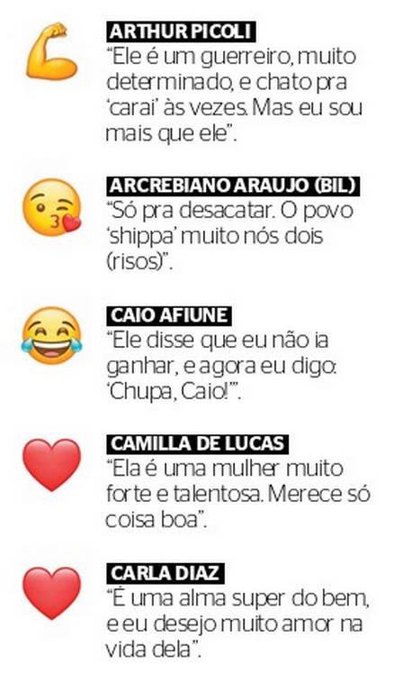 Confira os emojis que ela escolheu para cada ex-BBB e o porquê: