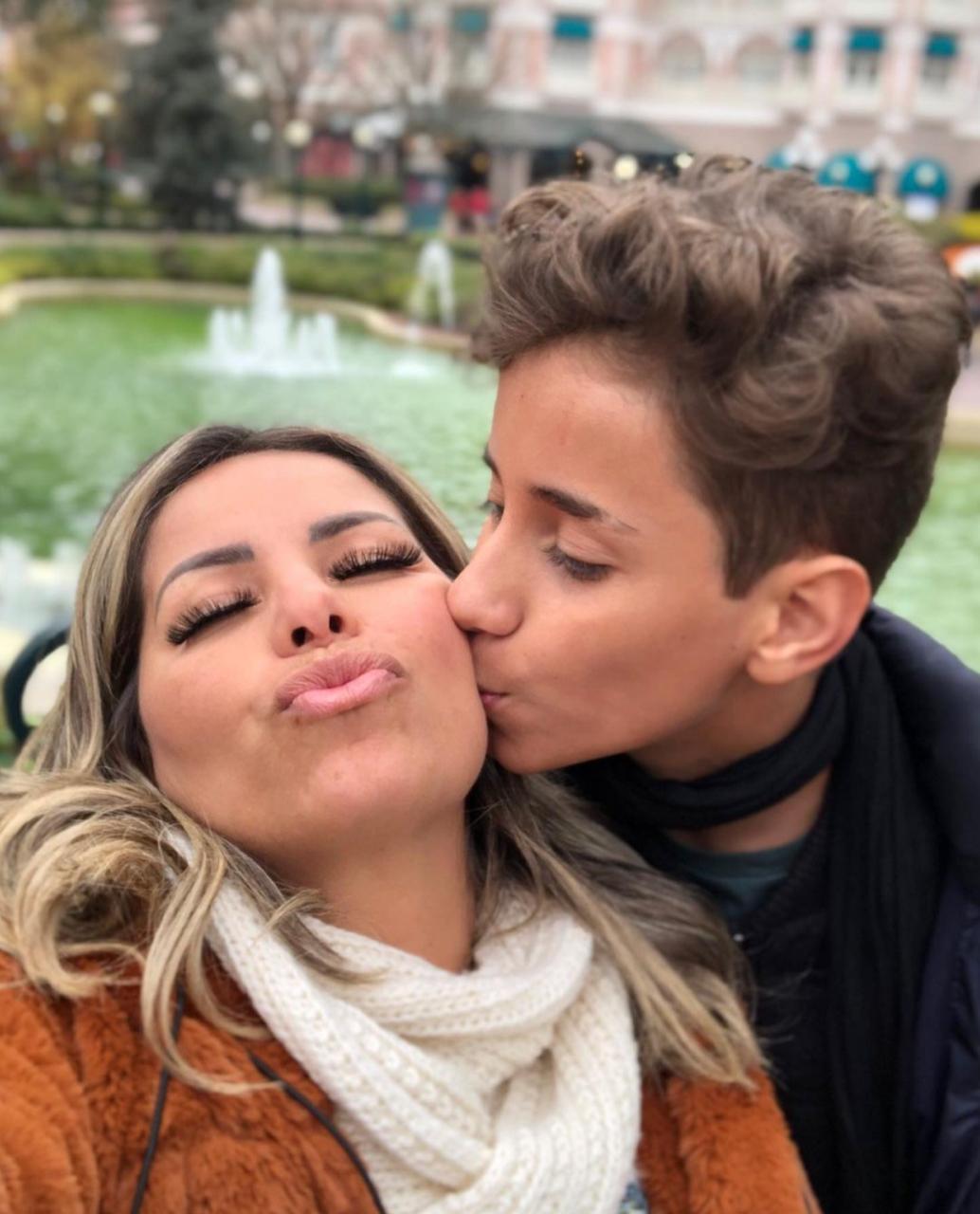 Lucas Santos aparece em foto beijando a mãe Walkyria durante viagem a Paris