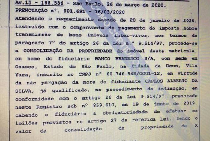 De acordo com informações da colunista Fábia Olivieira, o imóvel avaliado em R$ 3 milhões será leiloado pelo banco Bradesco, por que teria prestações do financiamento em atraso. Quando a cobertura for comprada, Carlinhos Mendigo receberá uma ordem de despejo.