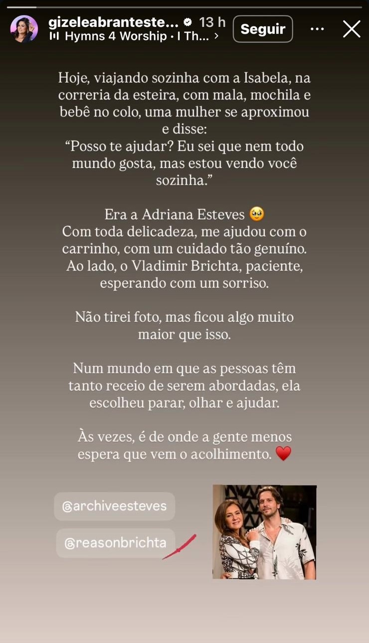 Relato de Gizele Abrantes - Foto: Reprodução/ Instagram