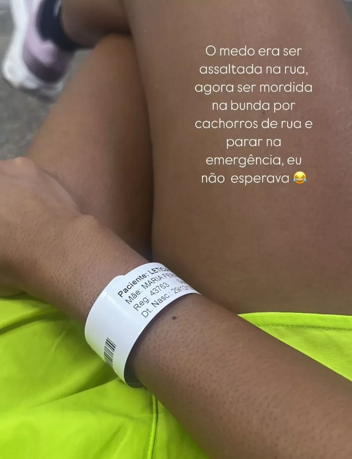 “Eu simplesmente fui fazer uma gravação hoje correndo na praia de Araçatiba, aqui em Maricá. Do nada, cinco cachorros de rua enormes me atacaram e eu não consegui sair. Acabou que eu tive que parar na emergência pra tomar vacina antirrábica e fazer curativo", disse.