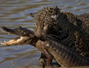Turista flagra momento em que onça-pintada caça jacaré no Pantanal; foto