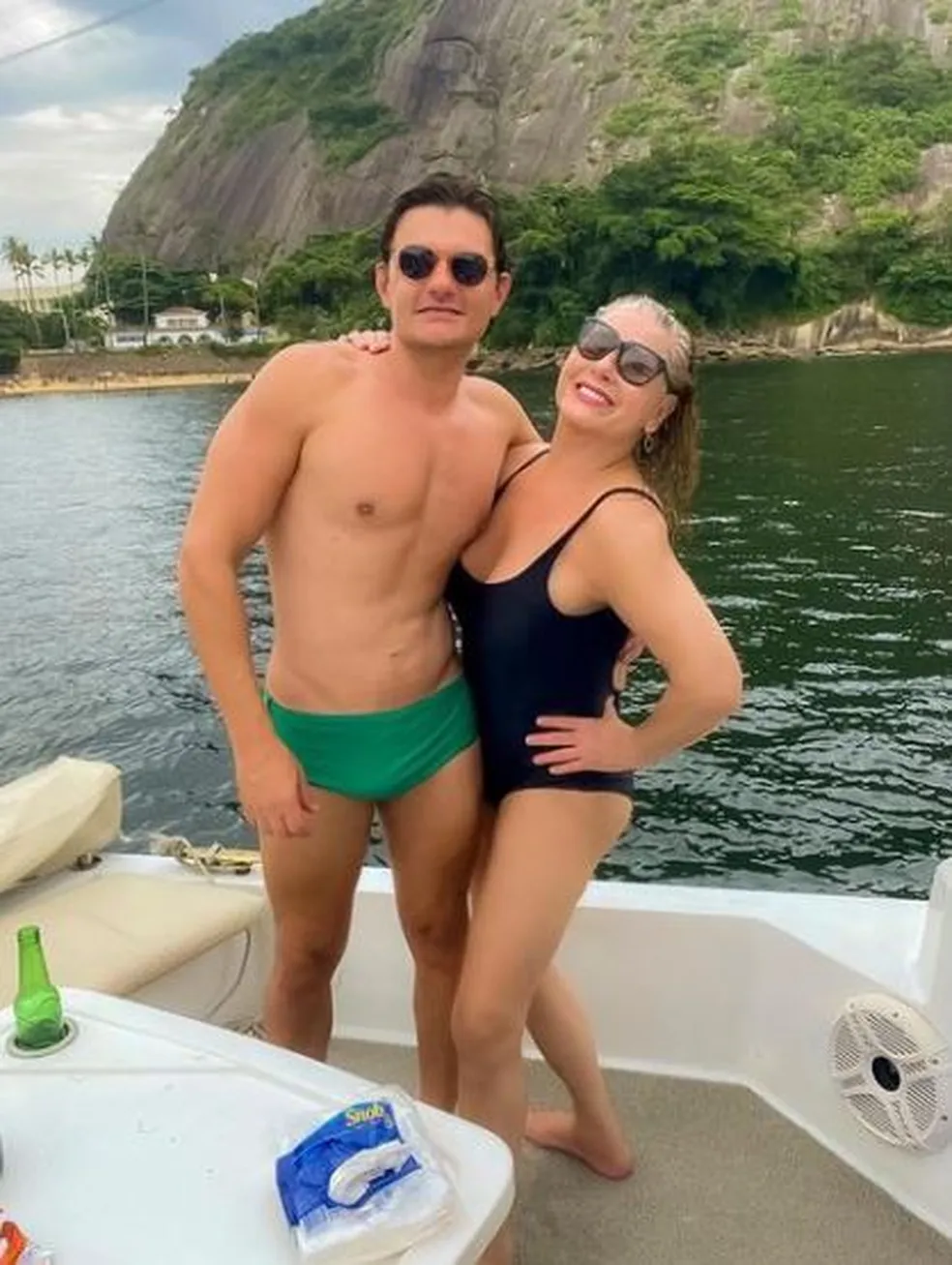 Atriz ao lado dos amigos Luciano Borges e Adilson e numa lancha. (Foto: Rep Instagram)
