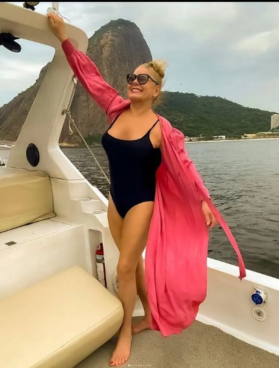 "Queridos Meus, que delícia passar um dia al mare com amigos do coração! Obrigada por esse passeio maravilhoso, cheio de alegria, aventura e conversa boa .Nada como o carinho dos amigos e água do mar pra recarregar as energias, né não?! Foi gostosooooo demais!. Um sábado de sol pra todos e beijinhos com sabor de sal, dessa sua Vera", legendou a foto, na qual aparece de maiô revelando as belas pernas.