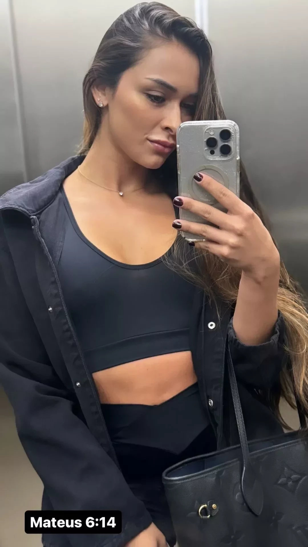 A atual de Militão, e ex de Léo Pereira, postou uma selfie tirada no elevador e escreveu "Mateus 6:14". A passagem bíblica diz: "Porque, se perdoardes aos homens as suas ofensas, também vosso Pai celestial vos perdoará a vós."
