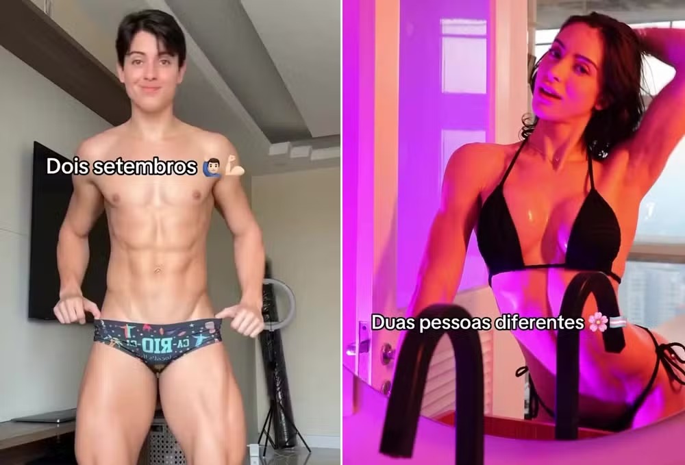 Bella Longuinho antes e depois de transição de gênero — Foto: Reprodução/Instagram