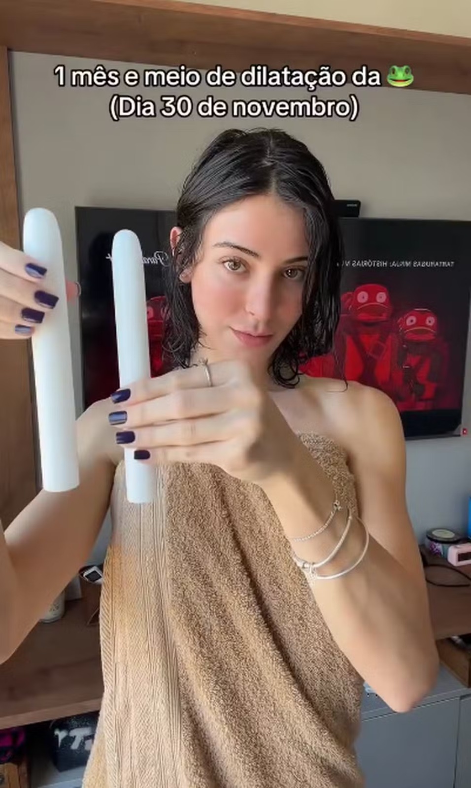 A influenciadora também comentou a ansiedade para concluir o processo e viver a nova fase de seu corpo. “Cada vez que troco o dilatador é uma animação”, afirmou, prometendo voltar às redes quando estiver liberada para a primeira relação sexual.