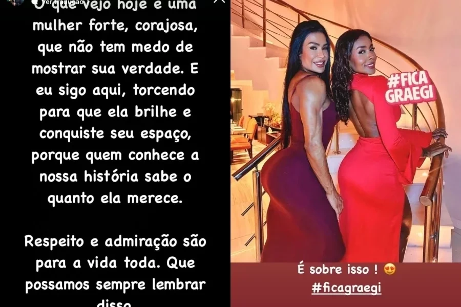 Na sequência, ele aproveitou para declarar sua torcida para a ex e sua irmã, Giovanna Jacobina, que estão confinadas no BBB 25. "O que vejo hoje é uma mulher forte, corajosa, que não tem medo de mostrar a sua verdade. E sigo aqui, torcendo para que ela brilhe e conquiste seu espaço, porque quem conhece a nossa história sabe o quanto ela merece. Respeito e admiração são para a vida toda. Que possamos sempre lembrar disso", disse ele.