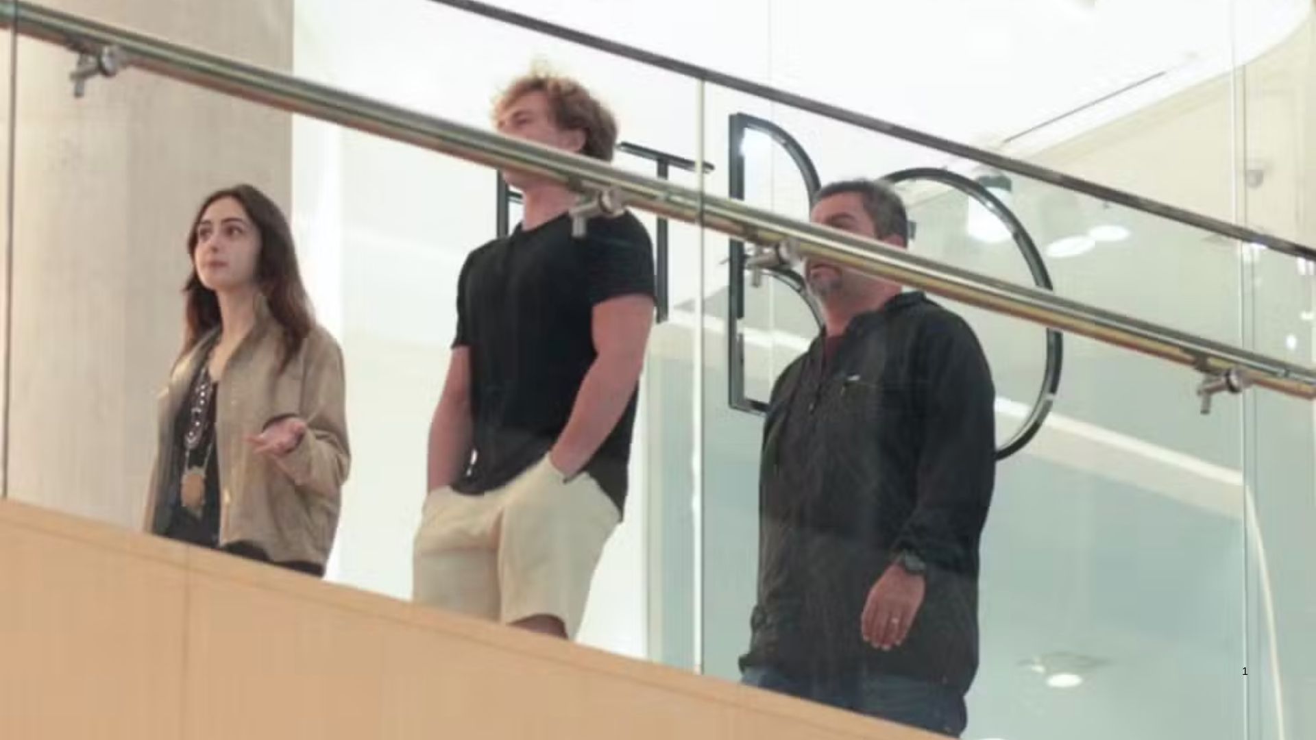 O jovem circulou pelos corredores do centro comercial usando calça bege e camiseta preta, acompanhado de Luiza e de um homem. Durante o passeio, os três caminharam tranquilamente pelo local, chamando atenção de quem estava no shopping.