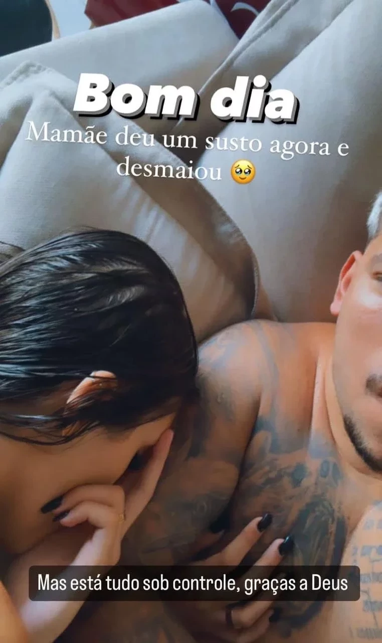 “De manhã eu fui tomar banho e estava com um pouco de cólica, normal no pós-parto dar um pouco de cólica. Fui tomar banho, e meu banho é quentão, aí eu fiquei bastante tempo no banho quente, e comecei a ficar tonta no banho quente. Aí eu saí do quarto, gritei o Rafa e desmaiei na cama. Só que agora eu já estou bem, eu também não tinha comido nada de manhã”, disse.
