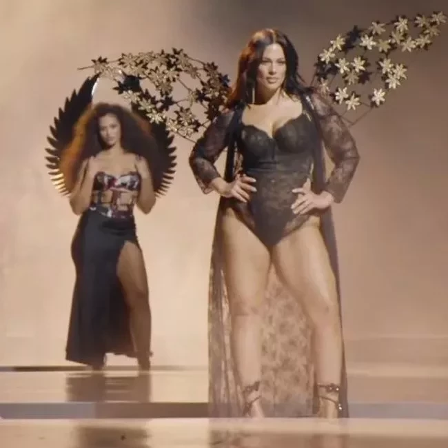 A ícone da moda plus size Ashley Graham desfilou em uma lingerie preta enquanto a cantora japonesa Lisa fazia sua primeira música.