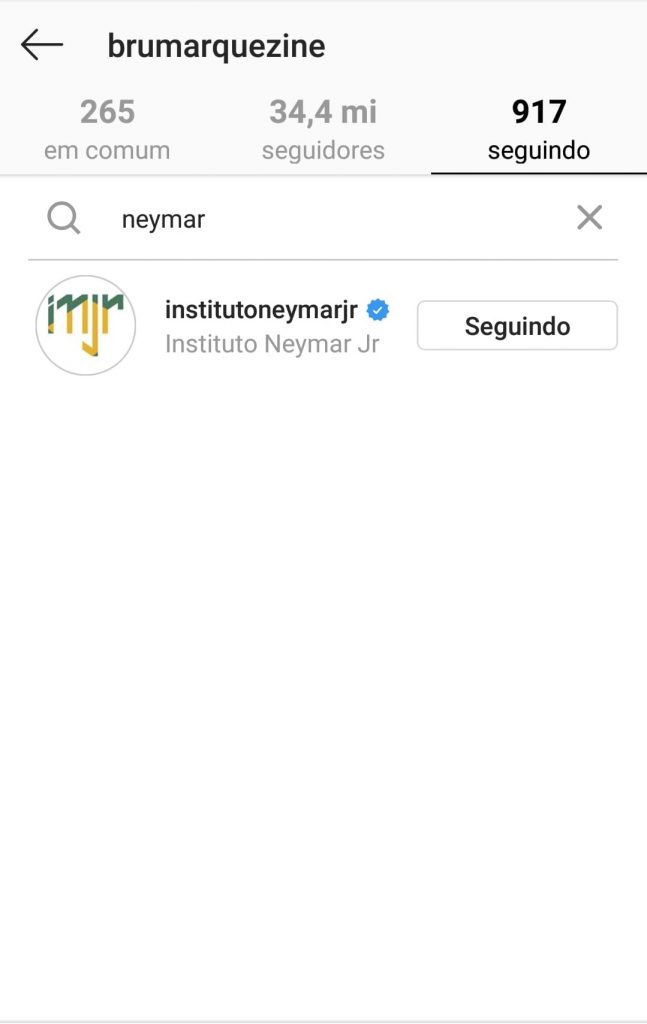 Agora os fãs do atacante Neymar, jogador do Paris Saint Germain, e da Atriz Bruna Marquezine, possuem a certeza de que o ship denominado “Brumar”, poderá não se concretizar novamente. Isto porque, Neymar e Bruna pararam de se seguir no Instagram, uma das redes sociais mais utilizada pelos dois.