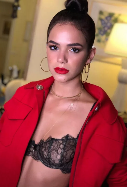 Bruna Marquezine quebra a web com batom vermelho e lingerie à mostra
