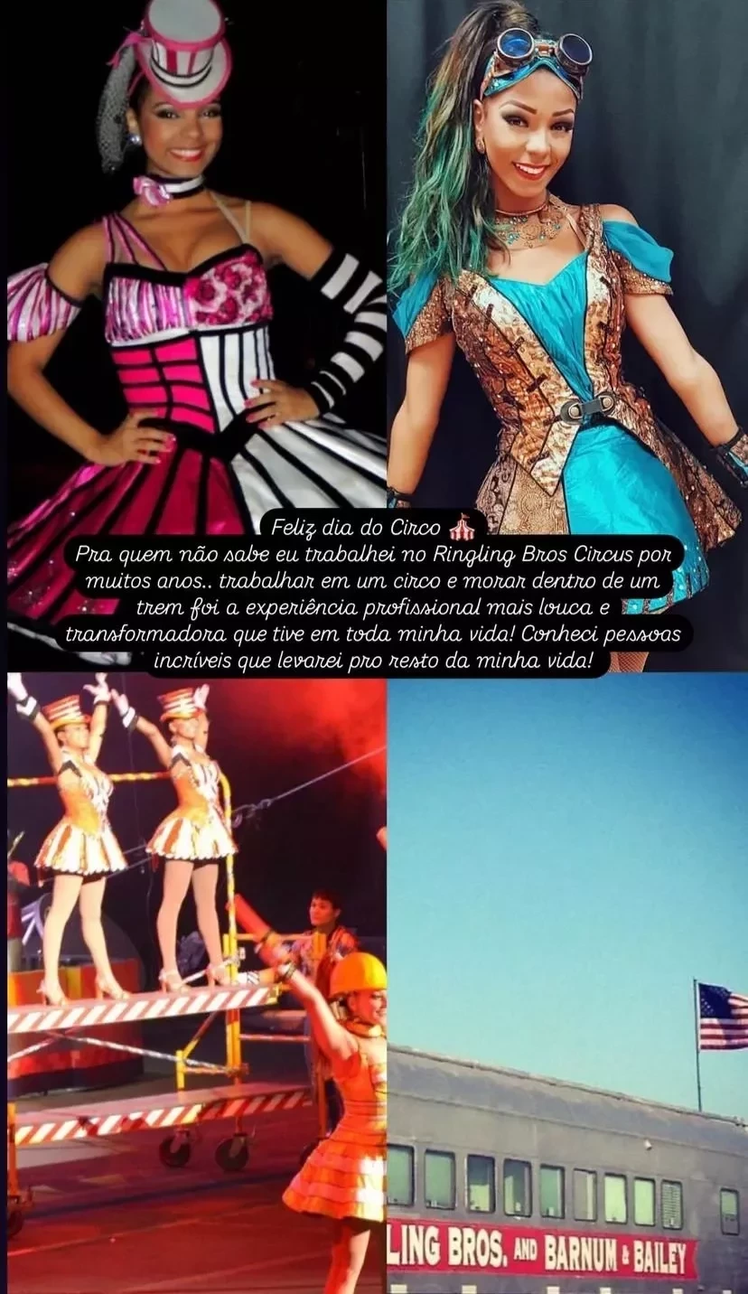 "Feliz Dia do Circo! Pra quem não sabe, eu trabalhei no Ringling Bros Circus por muitos anos... Trabalhar em um circo e morar dentro de um trem foi a experiência profissional mais louca e transformadora que tive em toda a minha vida! Conheci pessoas incríveis que levarei pro resto da minha vida!", explicou no story.