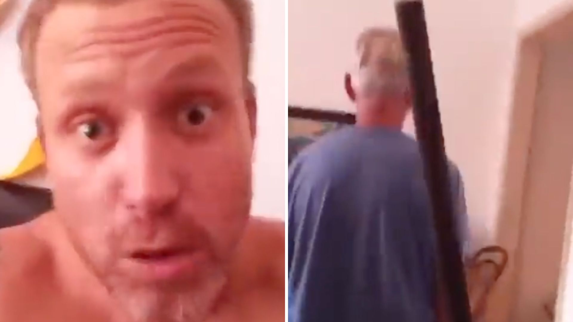 Na sequência, ele muda de cenário e mostra o bastão em mãos. Seu pai tenta desviar da câmera do celular do ator enquanto ele começa a fazer as ameaças. "Pai, se você não me der mil reais eu vou ser obrigado a te matar, né? Você prefere que você me dê mil reais ou que eu te mate? Você é obrigado a me dar mil reais", esbraveja ele, recebendo a negativa de Francisco.