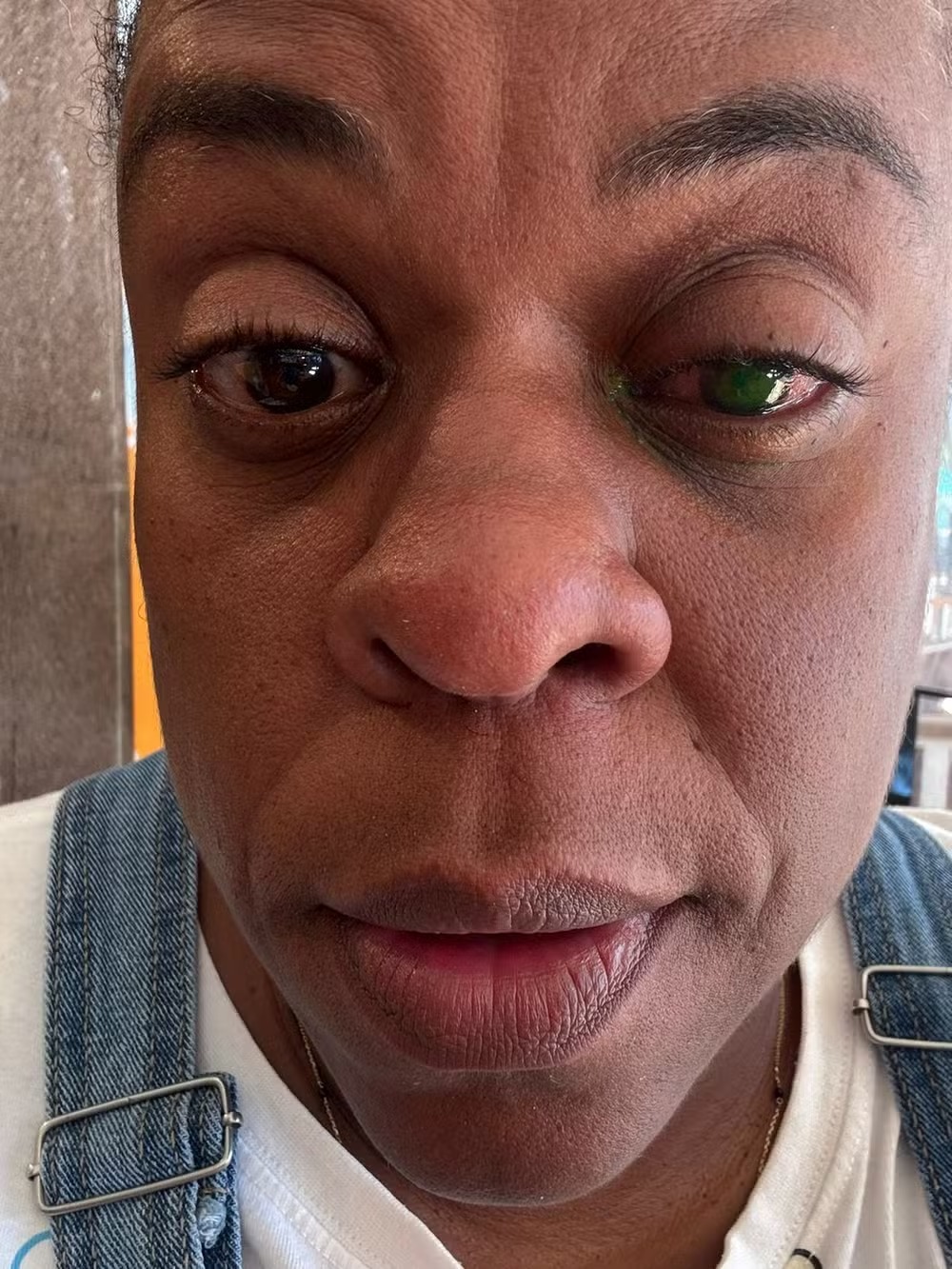 Durante o atendimento, foi identificado comprometimento temporário da visão no olho direito, além de alteração na coloração da região ocular. A atriz foi medicada, está reagindo bem aos medicamentos e segue sob acompanhamento médico.