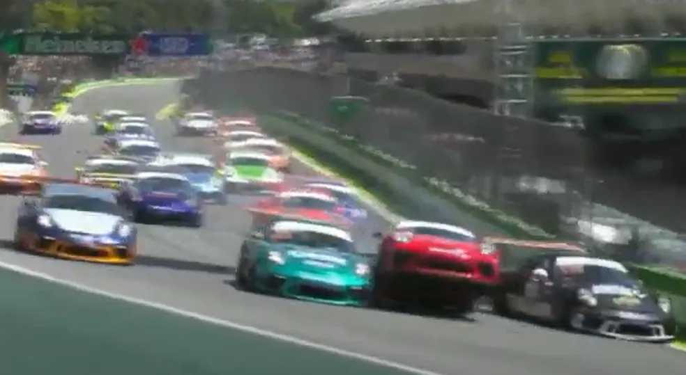 Caio Castro sofre acidente horas antes do GP do Brasil de Fórmula 1 (Foto: Reprodução)O artista participava da Porsche Carrera Cup. Pouco depois da largada, o piloto colocou o carro entre Raijan Mascarello e Nelson Marcondes Filho no fim da reta, com a tentativa de chegar ao “S” do Senna em vantagem.