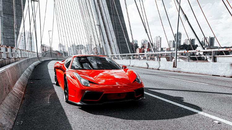 Em dezembro passado, o projeto de customização da Ferrari vermelha foi concluído, incluindo peças de fibra de carbono feitas sob encomenda nos Estados Unidos e ganho de potência para passar de 600 cv.