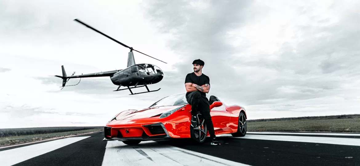O proprietário, que também é piloto, já aproveitou para acelerar a 458 renovada em uma pista de pouso, em alto estilo: teve até helicóptero acompanhando os testes do artista, como você confere em fotos que acompanham esta reportagem.