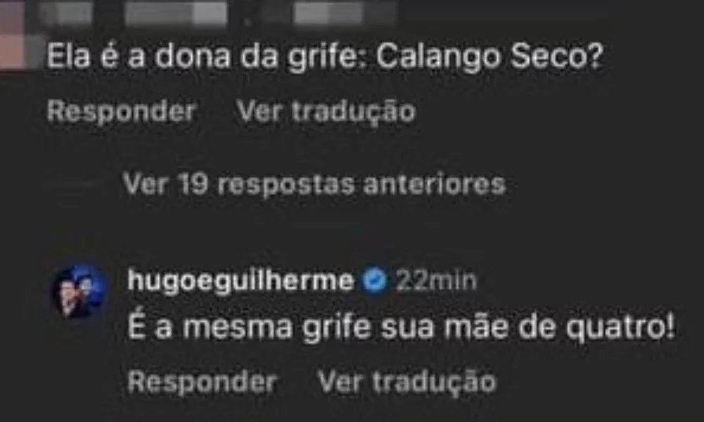 Resosta de Hugo a crítica do internauta. Foto: Instagram