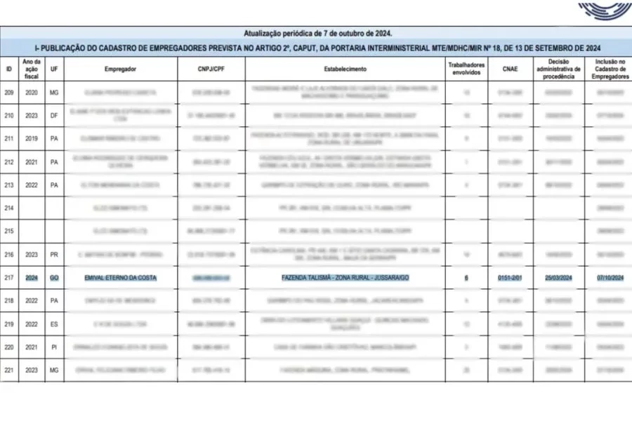 A nova atualização da lista inclui 176 nomes de empregadores, entre eles o do sogro de Virginia Fonseca, que teriam submetido trabalhadores a condições análogas à escravidão. Ainda de acordo com o documento, seis trabalhadores foram encontrados nessa situação na fazenda do cantor.