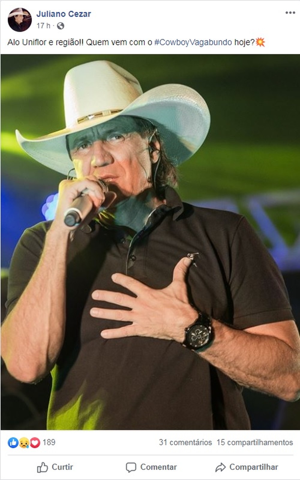 Juliano Cezar tinha 58 anos, era casado e não tinha filhos. O corpo será velado e sepultado em Passos (MG) – cidade natal do cantor.