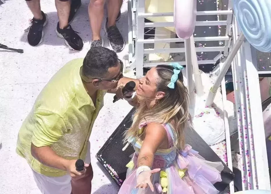 Carla Perez e Xanndy se beijam no trio elétrico de bloco infantil; fotos!
