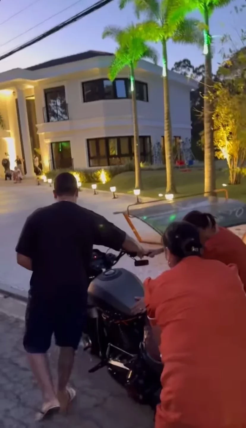 Com a ajuda de suas funcionárias, Maia foi até a porta da mansão da artista empurrando a moto, que está avaliada em mais de R$ 100 mil no Brasil. Além disso, ele sugeriu que a amiga o presenteasse com um relógio, já que isso não colocaria sua vida em risco.