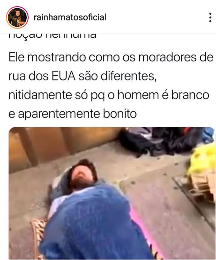 ''Olha como as pessoas de rua daqui são diferentes. Impressionante! Até nisso é diferente. Olha isso, parece um ator", disse no vídeo.