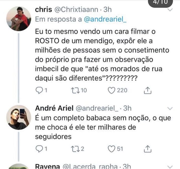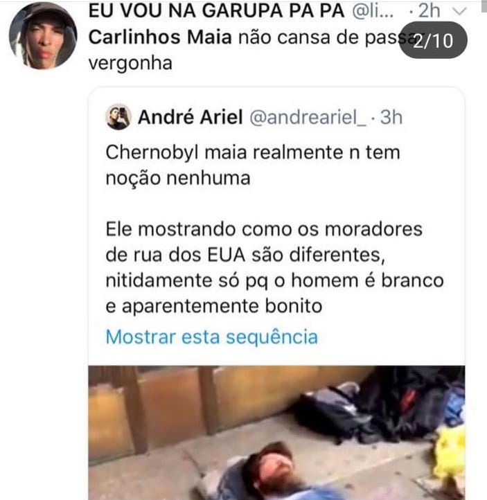 De acordo com publicação da blogueira Rainha Matos, o influencer mostra as diferenças do homem, que aparece nas imagens deitado no chão, denotando nitidamente a cor de pele e aparência em sua fala. Maia é alvo de críticas no Twitter.