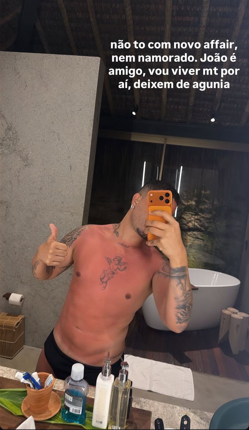 Diante dos comentários que circularam na web, ele se pronunciou nas redes: “Não estou com novo affair nem namorado. João é amigo. Vou viver muito por aí. Deixem de agonia”, escreveu.