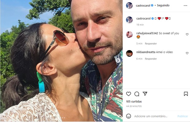 A atriz Carol Castro usou fez uma publicação no Instagram nesta quinta-feira (28) para assumir o namoro com Marcos Rohrig. A atriz compartilhou alguns registros ao lado do produtor de 36 anos, que também oficializou a relação ao compartilhar um vídeo da amada dirigindo.